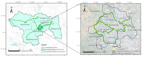Distribution of ecological corridors in Xuchang City and central urban area.