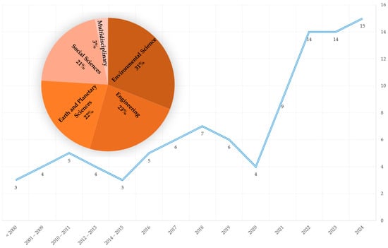 The distribution of research by subject area shows a major focus on environmental science (31%), engineering (23%), earth and planetary sciences (22%), and social sciences (21%). This interdisciplinary approach highlights the complexity of flood management in urban areas, covering the environmental effects of flooding, the technical challenges in road engineering, and the socio-economic impacts on communities. The emphasis on environmental and engineering disciplines reflects the technical and ecological challenges of urban flood management, while the significant representation of social sciences underscores the importance of human, policy, and governance aspects in addressing flood risks.