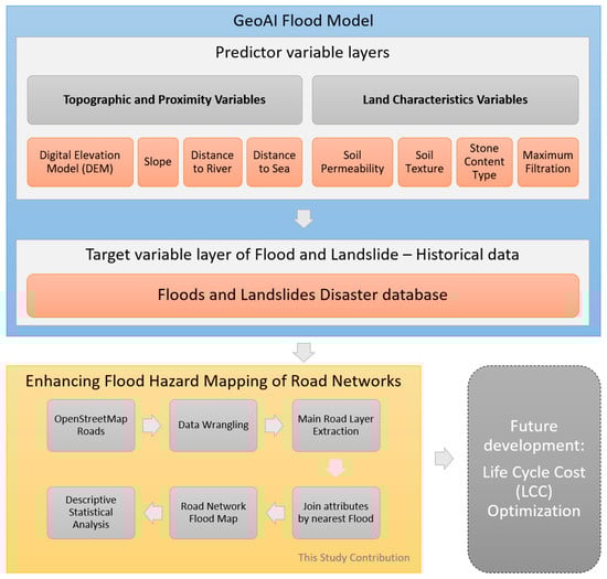 Methodological framework for GeoAI-enhanced flood risk assessment for road network analysis.