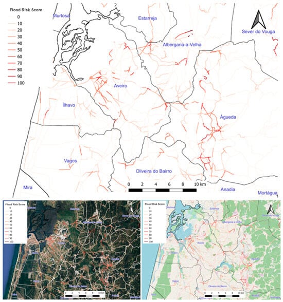 Portugal’s landscape and weather patterns create unique challenges for managing flood risks [4,5,6]. The country’s roads, an important part of its infrastructure, are increasingly vulnerable to flooding caused by climate change. This vulnerability not only threatens the roads themselves but also raises serious economic and safety concerns [7,8].