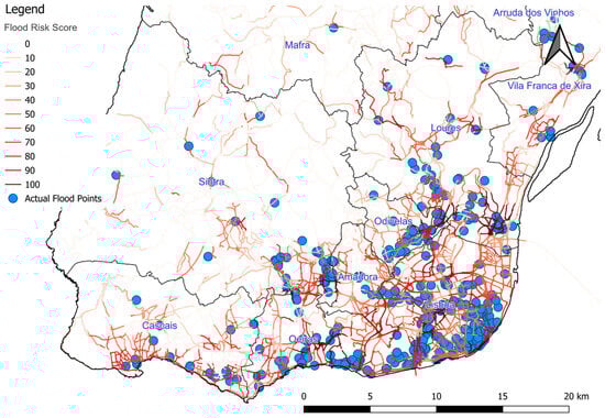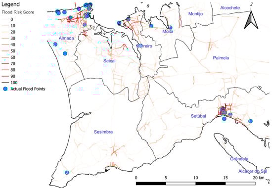 Urban resilience, especially when it comes to managing flood risks, is important for modern city planning and building infrastructure. The use of geospatial artificial intelligence (GeoAI) has transformed how we understand and lessen the effects of floods, providing methods that are more accurate, efficient, and predictive [1,2,3]. This study is a leading example of using GeoAI to improve urban resilience, focusing specifically on the road network in Portugal.