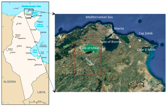 The Mateur plain has a surface area of about 260 Km2 and is part of the huge Ichkeul watershed (2600 Km2) in the Bizerte region of northern Tunisia (Figure 1). The region under study has a Mediterranean sub-humid climate with a significant variation in mean monthly temperatures. The coldest month is January, with a mean temperature of 11 °C, and the hottest month is August, with a mean temperature of 27 °C. The area’s potential evapotranspiration values are around 1800 mm/year, while the mean annual precipitation is 570 mm.