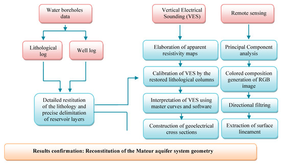 This study used a multitude of prospecting techniques and data sources, including remote sensing image processing, VES, and the analysis of well logging from the available water boreholes.