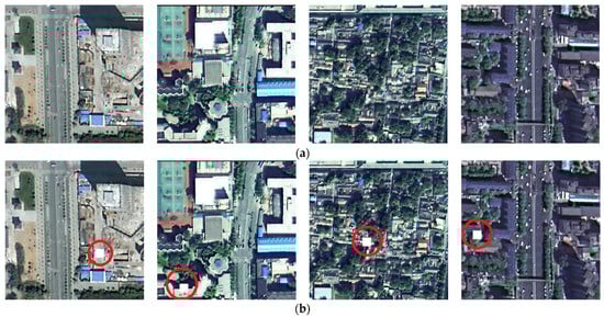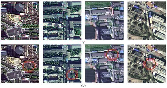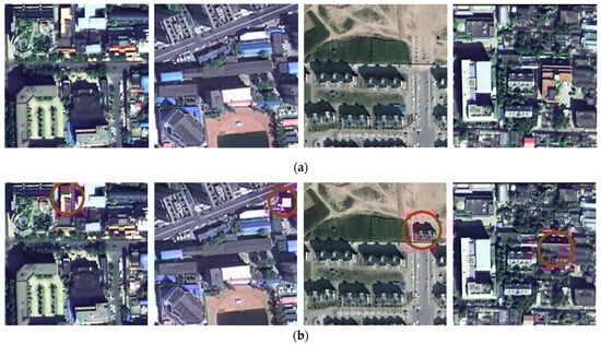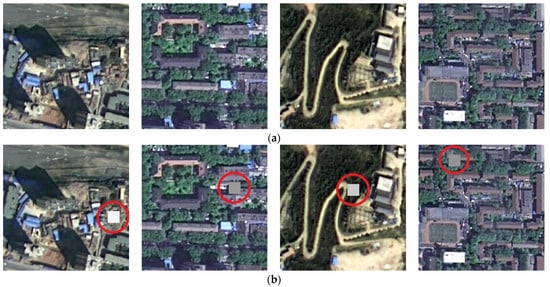 Examples of subject-related tampering of added buildings. (a) Original HRRS images. (b) Tampered images.