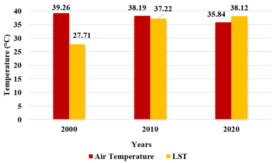 Comparison of mean annual land-based air temperature and LST values in Islamabad during the study period.