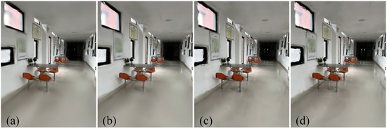 Comparison of rendering effects for different threshold values of the average magnitude of spatial position gradients. (a–d) represent the rendering effects when the threshold values are set to 0.0001, 0.0002, 0.0003, and 0.0004, respectively.