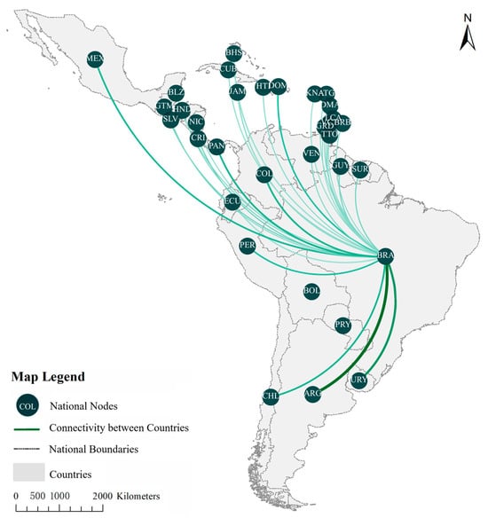 Spatial patterns of connectivity between Brazil and regional countries.