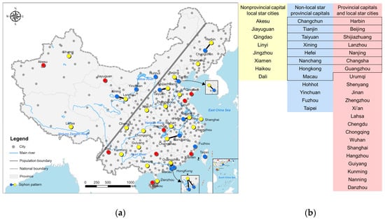 In addition, through a comprehensive comparison analysis of global and local star cities, this study finds that provincial capitals dominate among both global and local star cities, while other noncapital star cities are mostly tourist hotspots or cities with certain characteristics, such as a deep cultural heritage. From a comprehensive perspective, most provincial capitals are more influential than ordinary cities, particularly in local star cities. Other noncapital star cities exhibit their uniqueness, receiving additional attention and exerting a strong influence on neighboring cities.