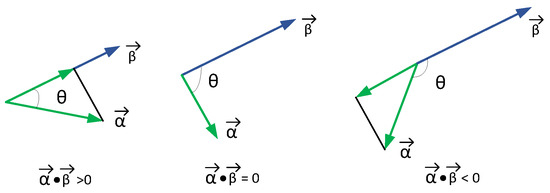 In (1), is the length (module) of vector , and is the angle of vectors and , denoted as , . The inner product of vectors and represents the projection of vector in the direction of vector , as shown in Figure 9.