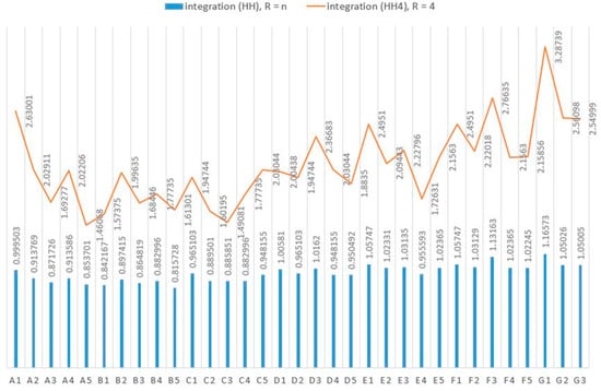 4.1. Global (R = n) Integration, Local (R = 4) Integration, and Connectivity