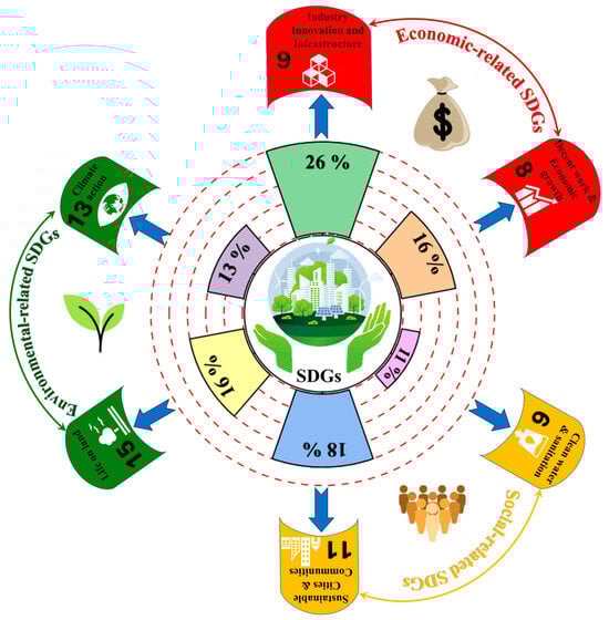 While existing research has made significant advances in spatiotemporal monitoring of LULC dynamics using multispectral satellite imagery across diverse climatic regions [,,,,], three critical gaps persist in current understanding. First, although studies have examined either urban growth patterns or flood hazards independently, limited research integrates both aspects within a unified analytical framework for coastal megacities. Second, while the importance of SDGs is widely recognized, quantitative methodologies linking LULC changes directly to SDG achievement metrics remain underdeveloped, particularly for economic indicators (SDGs 8 and 9), environmental measures (SDGs 13 and 15), and social benchmarks (SDGs 11 and 6). Third, existing predictive models often lack the integration of hydrological risk assessment with future urban development scenarios, limiting their practical application in sustainable urban planning.