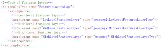 As Figure 10 shows, the element types expanded by Geo-MPEG-7 include three levels of feature layers: low, mid, and high.