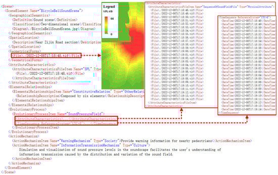 (2) A scene-oriented geo-soundscape data model (Geo-MPEG-7) is proposed which does not change the original audio storage structure and format but is an extension of the audio data information description. The Geo-MPEG-7 model realizes the comprehensive enrichment of geographical scene information while maintaining the original retrieval and filtering functions. The case study highlights that the model, which expands the related element classes, can store, organize, and describe real soundscape information more completely and is more flexible in querying and aggregating the soundscape information. It provides the possibility and scientificity of comprehensively constructing soundscapes in a real geographical environment. It also highlights the significance and unique value of this research in expanding geographical information in the field of soundscapes.