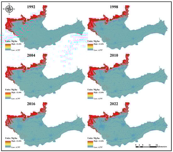 This study constructed a carbon pool density table (Table 4) in consideration of the actual conditions of the study area [24,25].