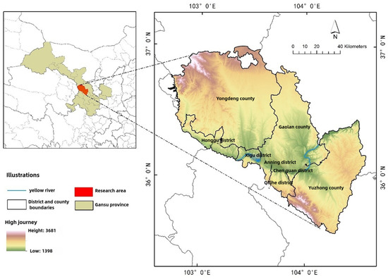 Lanzhou, the capital of Gansu Province, boasts a total area of 13,100 sq km, showcasing a distinctive geography. By 2023′s end, its populace reached 4,425,100, nestled within coordinates 102°36′ E to 104°35′ E and 35°34′ N to 37°00′ N. The city’s topography contrasts flat central–west regions with steep northeastern terrain. The Yellow River, a crucial waterway, traverses southwest, fostering a warm continental climate. The urban area spans 2031.8 sq km, with grasslands prevalent, reflecting the regional ecology. The urban agglomeration, strategically positioned along the Yellow River, nurtures economic and cultural vitality (Figure 1), emphasizing the river’s significance in shaping Lanzhou’s urban fabric and economic dynamics.