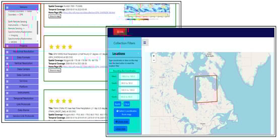 Figure 7. Spatial coverage filter interface and sensor-faceted search interface. - (c)