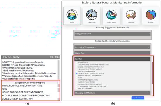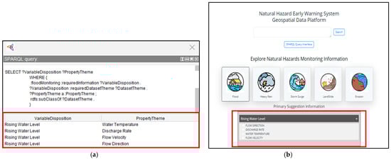 As previously mentioned, incorporating semantic technologies can enhance geospatial data’s interoperability, integration, discovery, and usability, thereby reducing the dependency on user expertise and the time needed to gather geospatial data in the discovery process. Most previous studies in disaster management applications use semantics (including ontologies) in geospatial data discovery and deal with the integration of geospatial datasets for specifically defined tasks [53,54]. These systems enabled the automated analysis of data from different geospatial sources. However, the process of data discovery is still limited in the existing EWSs, where the required geospatial data are already identified or do not cover the geospatial characteristics to improve dataset selection.