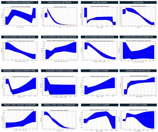 Other high-ranking variables include the percentage of the population employed in the primary sector (21.2%) and travel time to the coast by public transport (25.6%), both of which point to contextual factors that facilitate marine engagement. The former reflects the relevance of traditional economies, such as agriculture and fisheries, in cultivating environmental awareness and stewardship. The latter highlights the enabling role of sustainable accessibility; schools with efficient public transport connections to coastal zones (e.g., train and direct public lines) are better positioned to carry out field-based marine learning activities.