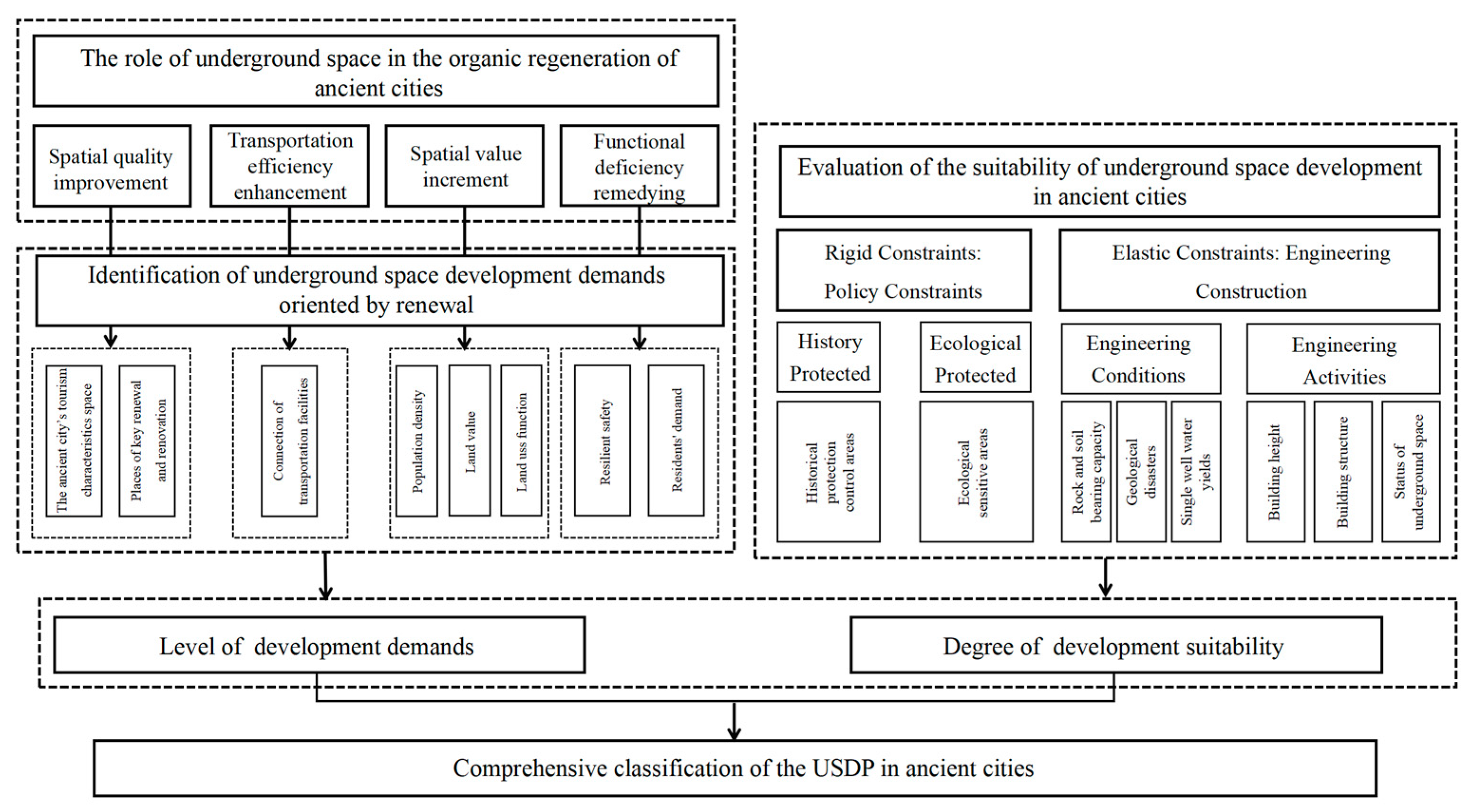 - Hong, X.C.; Zhang, J.X.; Chen, L.; Liu, C.J.; Cai, H. Research on the Development Model and Strategy of Underground Space in Ancient Cities Based on Organic Renewal Theory. China Anc. City 2024, 38, 48–56. [Google Scholar]