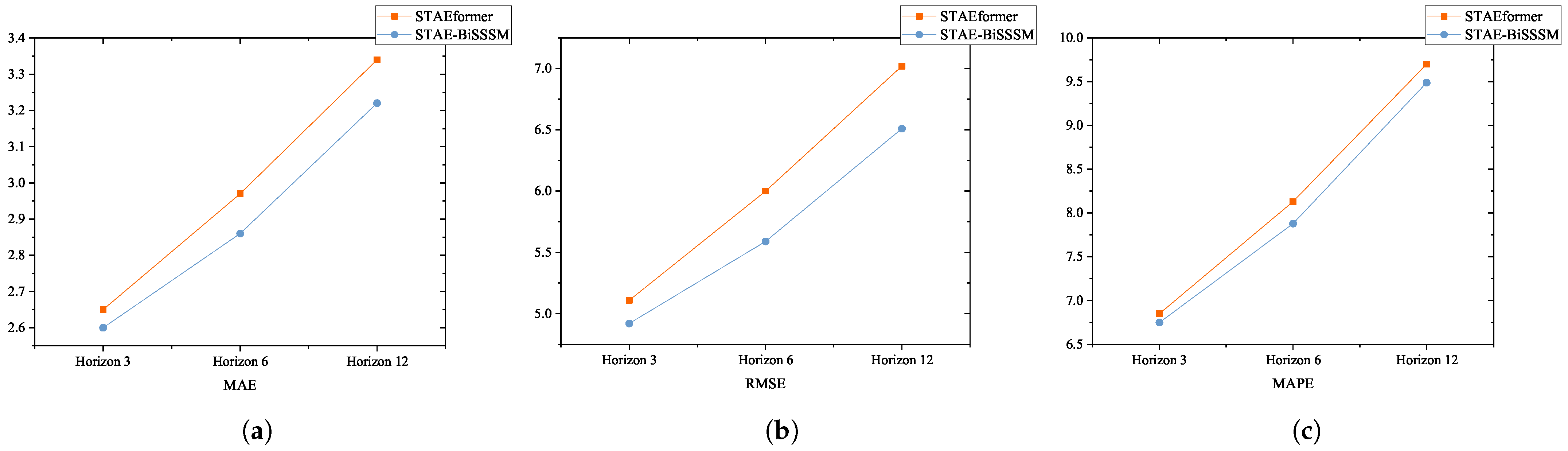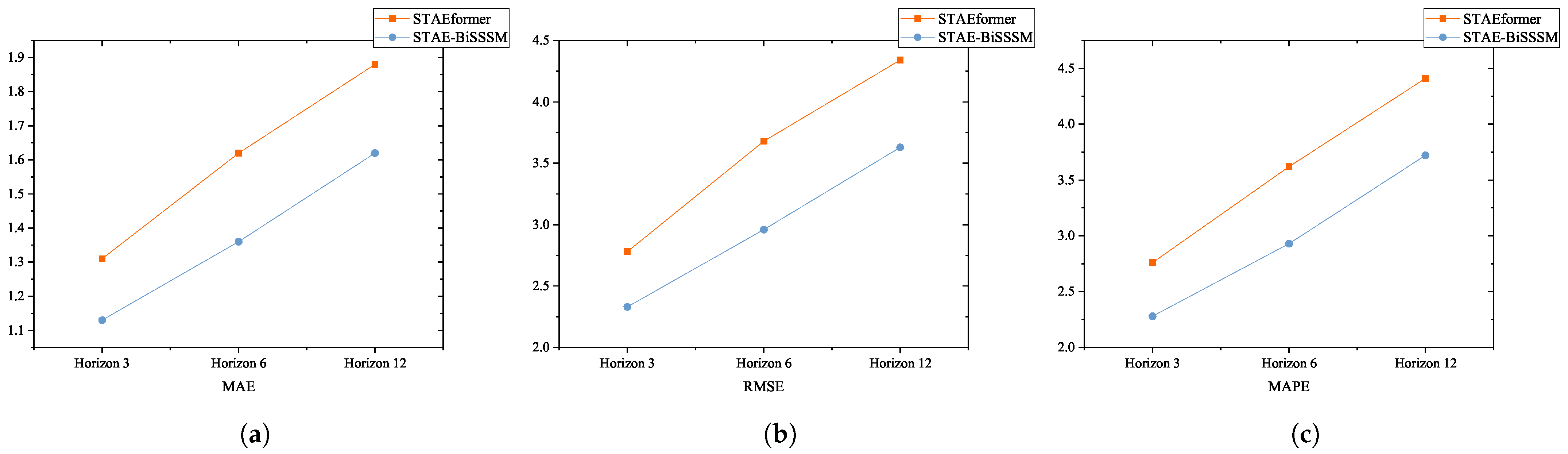 | Datasets | Models | STAEformer | STAE-BiSSSM | |