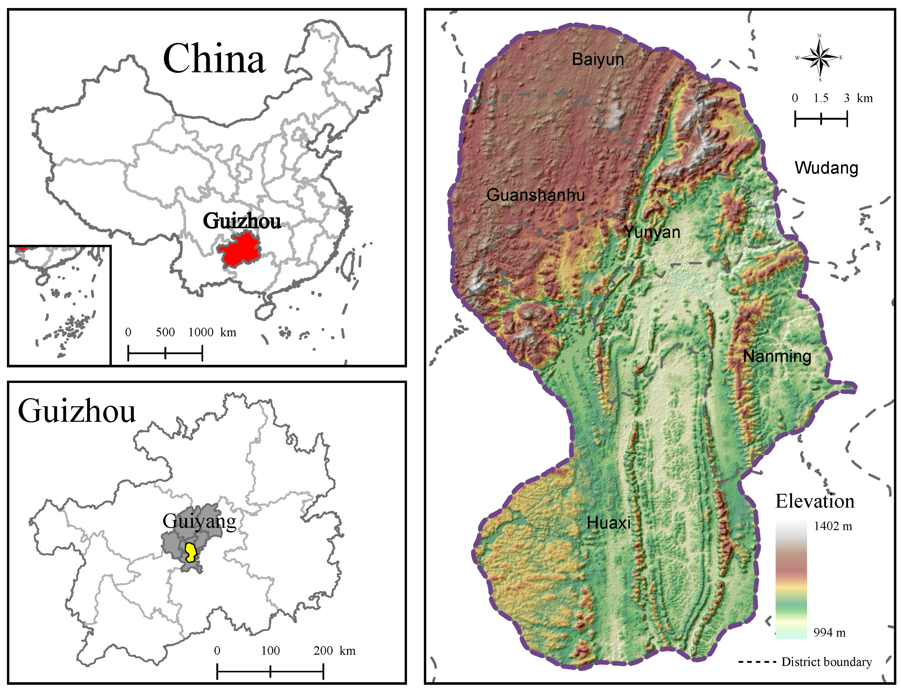 | Administrative division map | Guiyang City administrative boundaries (2022) | Resource and Environmental Science Data platform [65] |