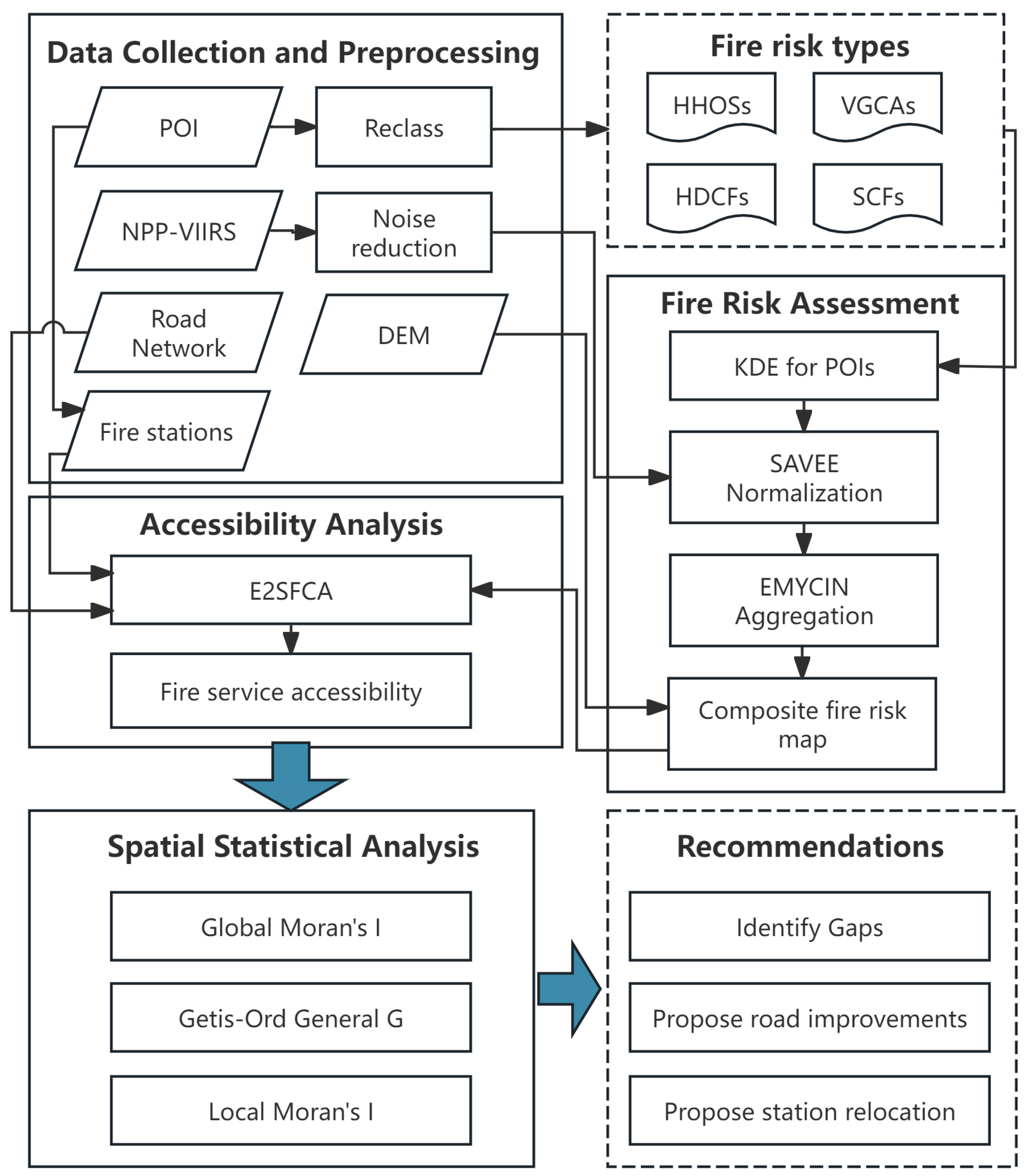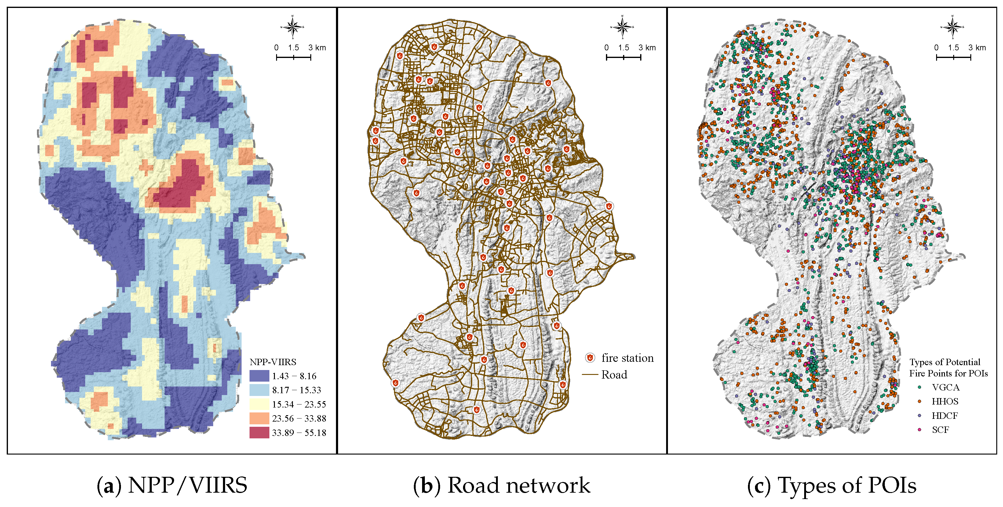 - Wang, K.; Yuan, Y.; Chen, M.; Wang, D. A POIs based method for determining spatial distribution of urban fire risk. Process Saf. Environ. Prot. 2021, 154, 447–457. [Google Scholar] [CrossRef]