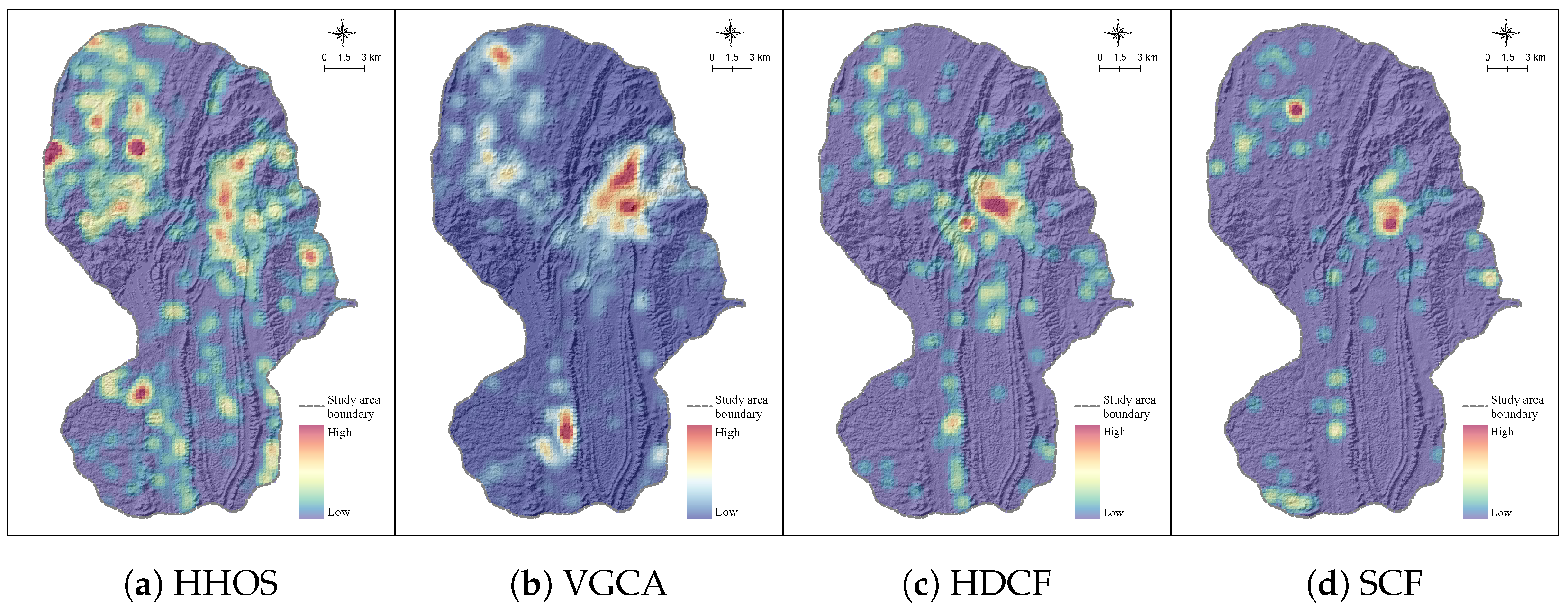 5.1. Kernel Density Analysis Results