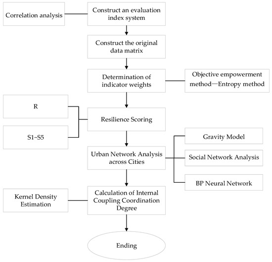Figure 19, it can be observed that over the study period, the coupling and coordination degree of urban flood resilience in all three regions generally exhibited a rightward shift in their distribution. This indicates that the level of coupling and coordinated development of urban flood resilience in the three regions has been increasing.
