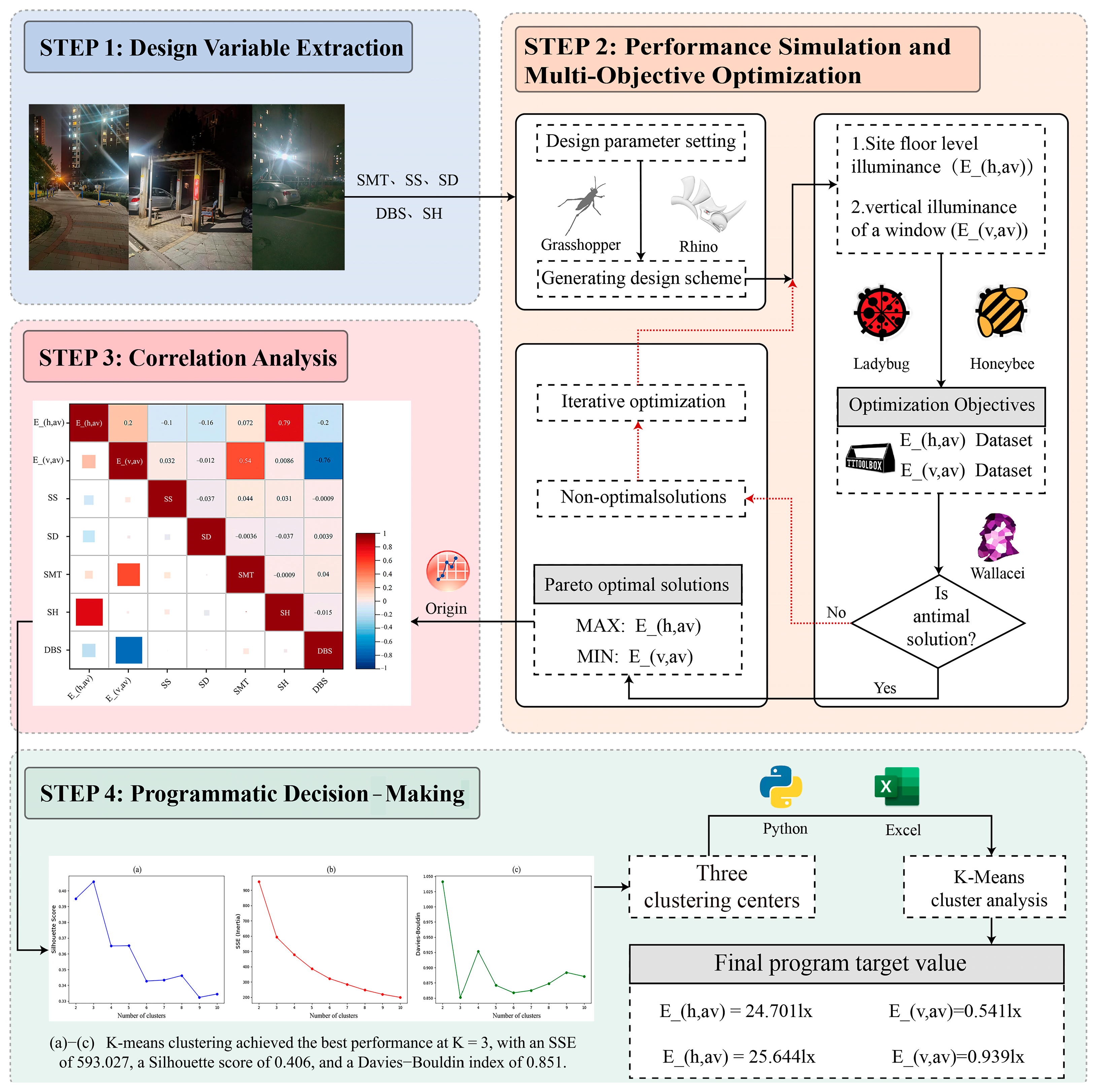 APA StyleWen, F., Sun, W., Jiang, L., Yun, C., & Wang, X. (2025). An Integrated Framework for Multi-Objective Optimization of Night Lighting in Urban Residential Areas: Synergistic Control of Outdoor Activity Places Lighting and Indoor Light Trespass. ISPRS International Journal of Geo-Information, 14(10), 397. https://doi.org/10.3390/ijgi14100397