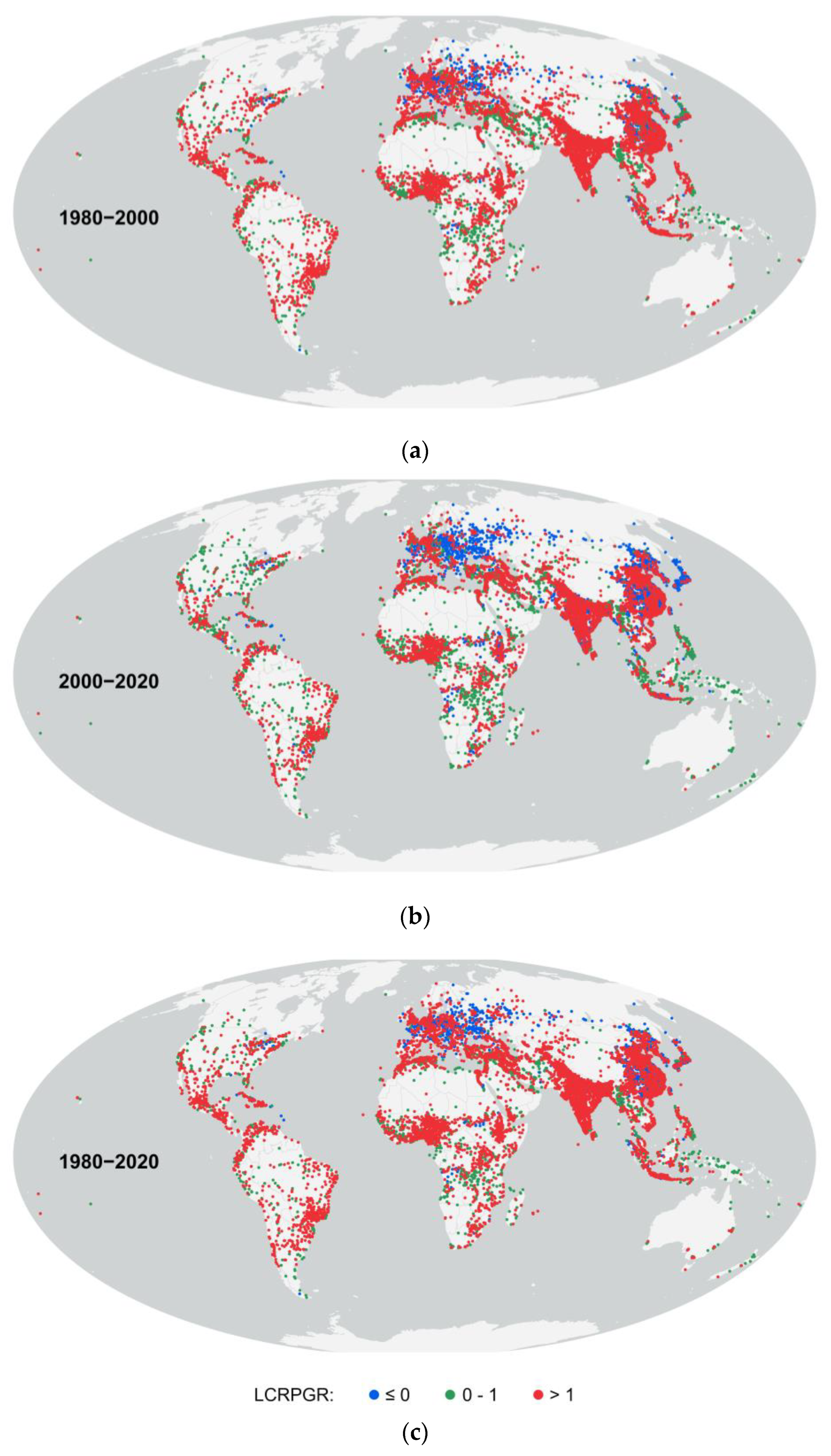 5.1. Temporal Trends in LCR, PGR, and LCRPGR