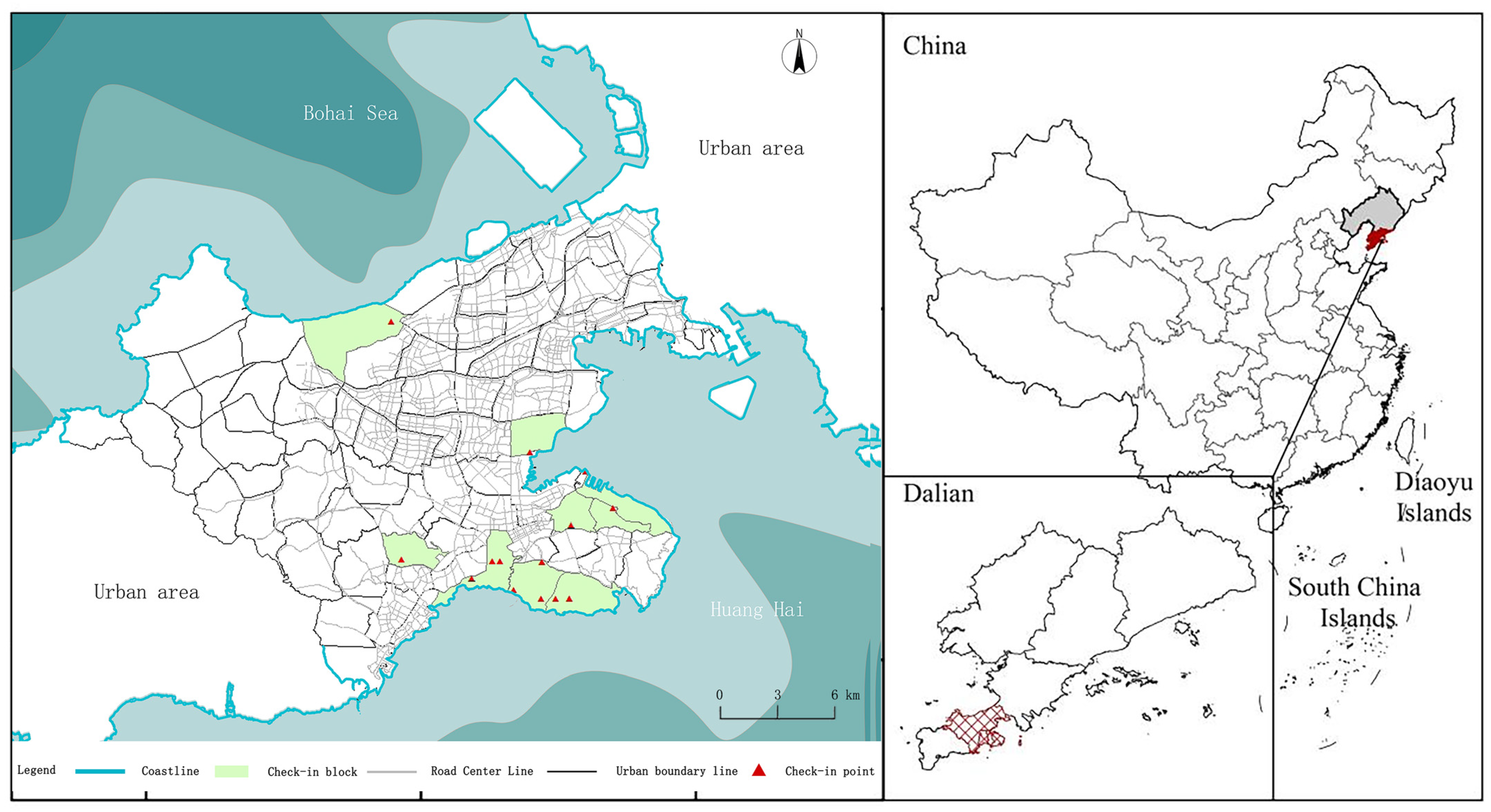 - Duan, Y.Z.; Gao, Y.C.; Wang, X.T. The Spatial Pattern Characteristics of Internet Popular Check-In Spots Based on Social Media Data: A Case of Qingdao. Urban Archit. 2025, 22, 113–117. [Google Scholar] [CrossRef]