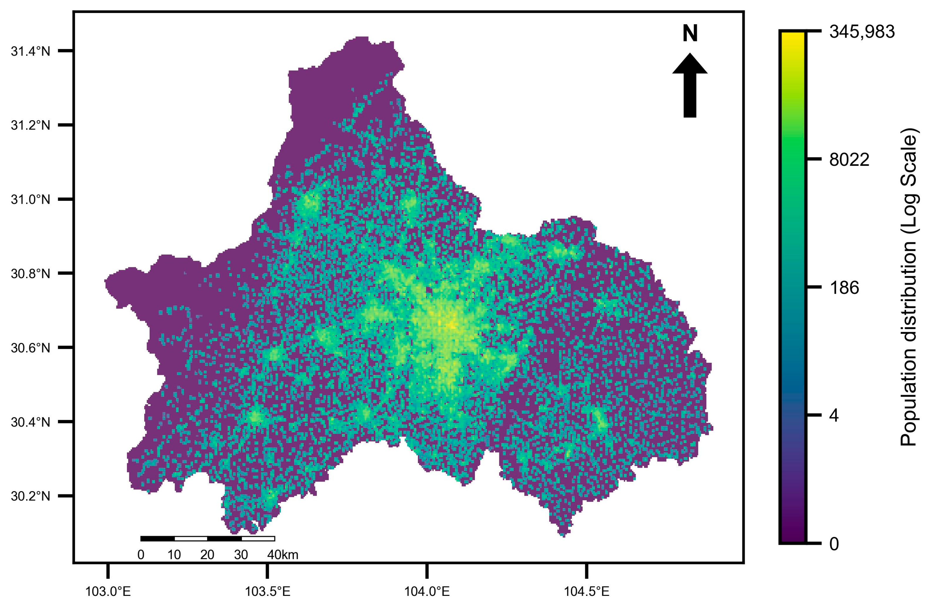 24]. The population distribution data derived from mobile phone signaling data represents the number of people staying in a specific location over a given period. In order to ensure the accuracy of ground collision risk assessment, it is crucial to obtain population distribution data with fine spatial resolution, broad coverage, and minimal data bias.