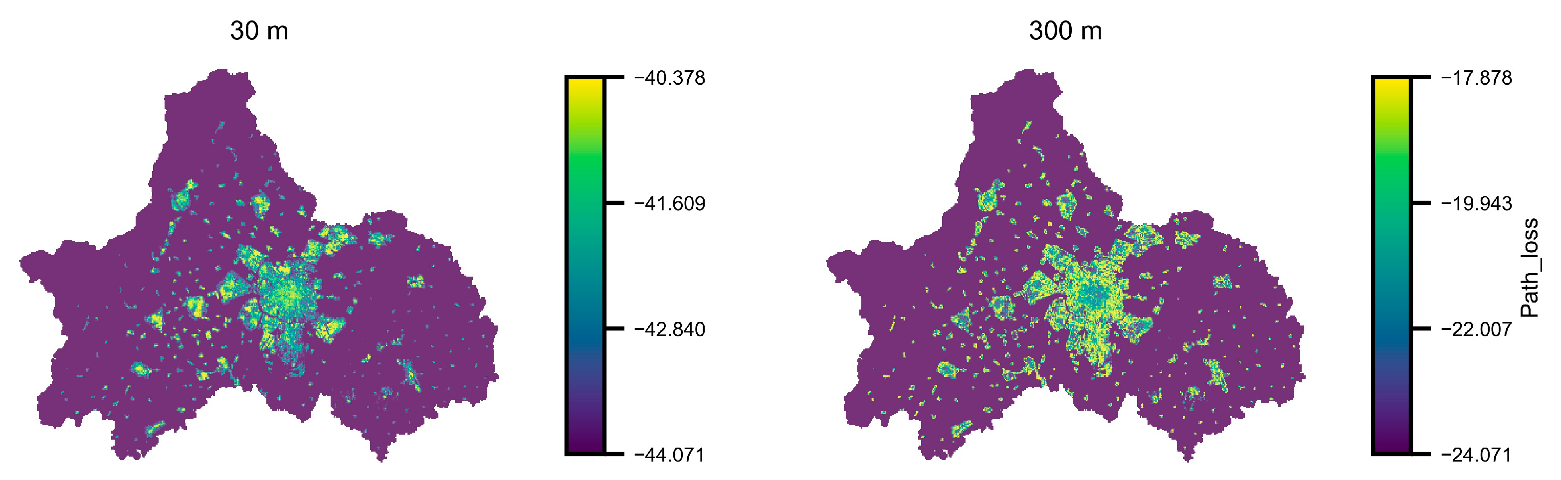 16]. In the NLoS scenario, an additional fixed loss value is incorporated into the path loss calculated for the LoS scenario. Finally, the path losses from both the LoS and NLoS scenarios are weighted and averaged to derive the final path loss distribution.
