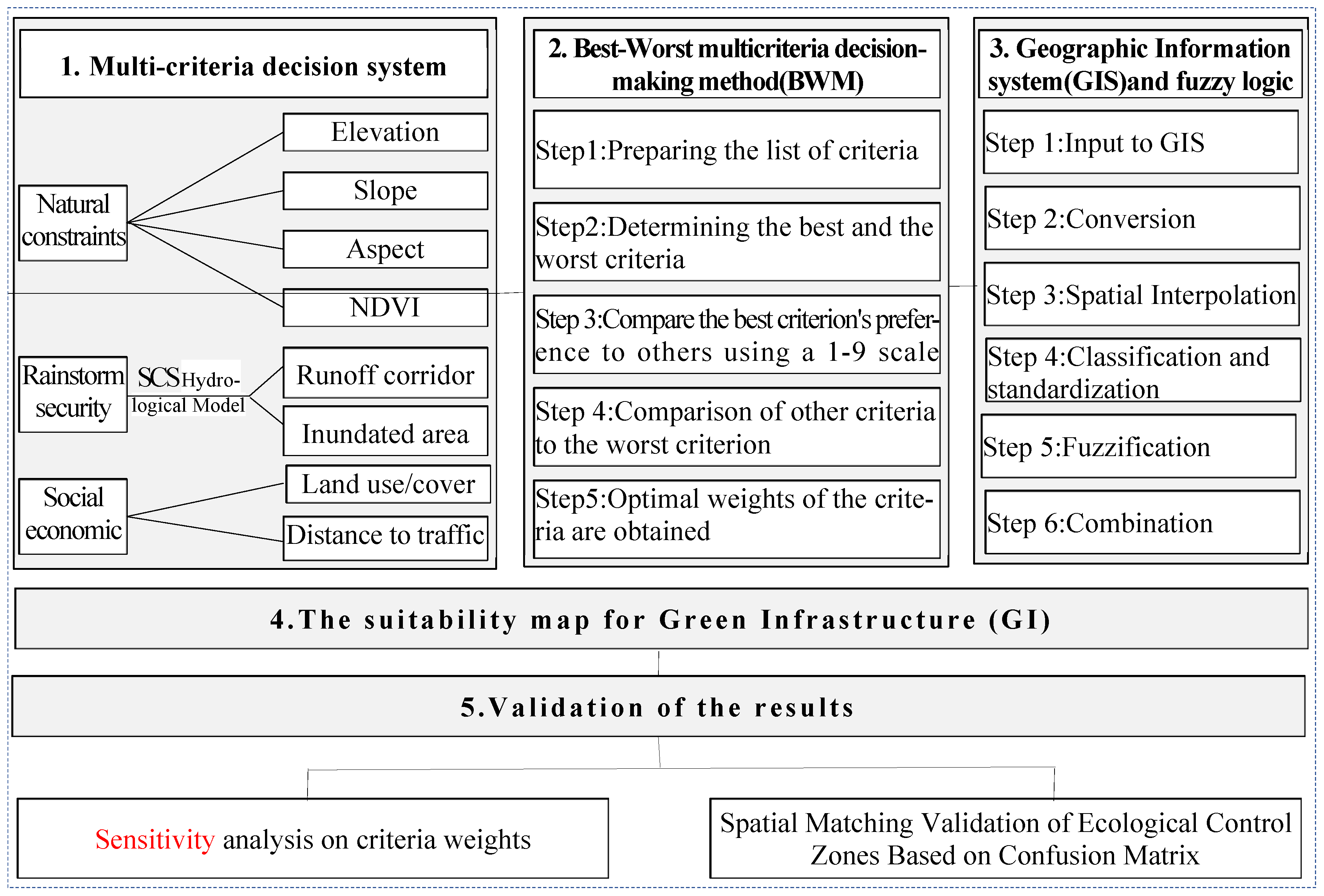 - Zeng, J.; Lin, G.; Huang, G. Evaluation of the cost-effectiveness of Green Infrastructure in climate change scenarios using TOPSIS. Urban For. Urban Green. 2021, 64, 127287. [Google Scholar] [CrossRef]