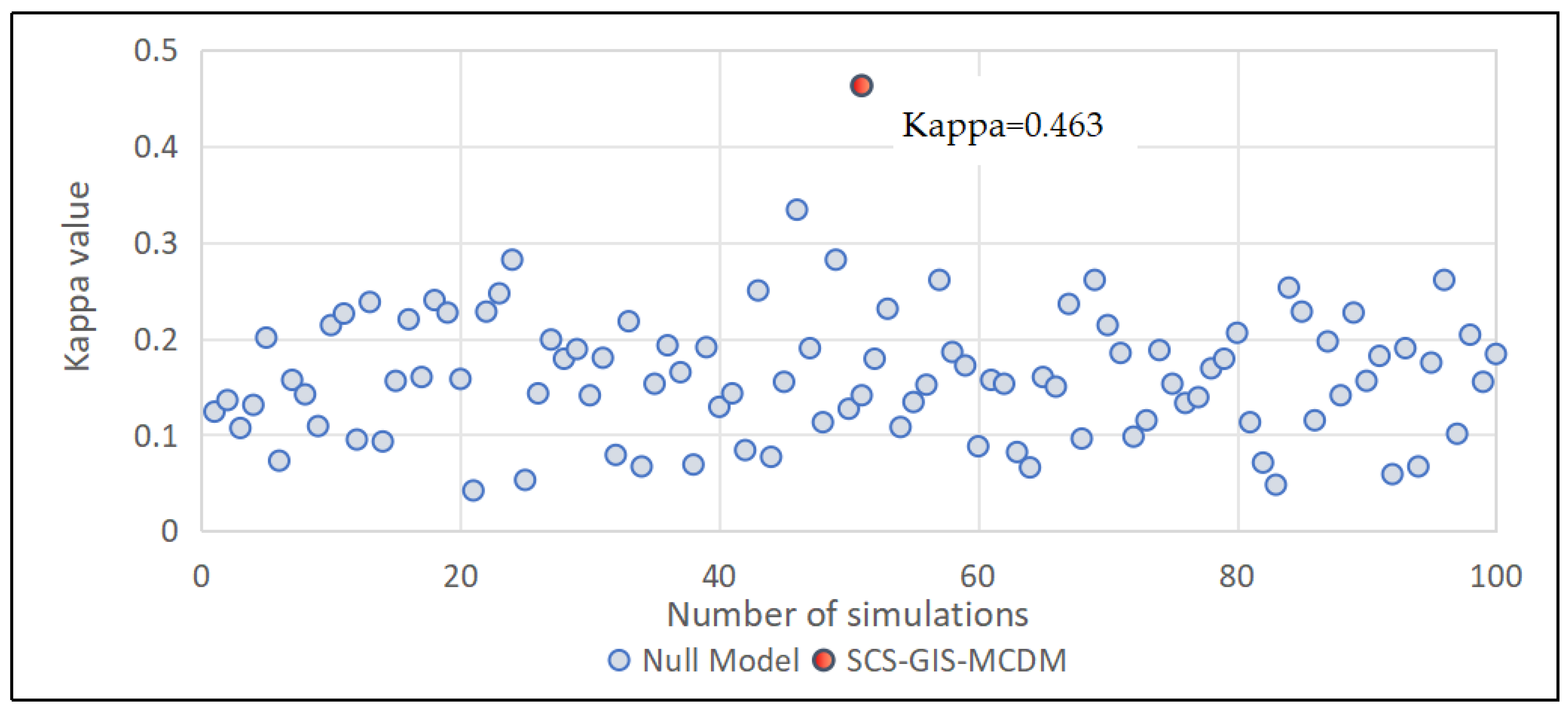 | Moderately suitable | 0.103 | 0.0045 | Inundated area (25%); Land use (19%) | Inundated area × Land use (9%) |