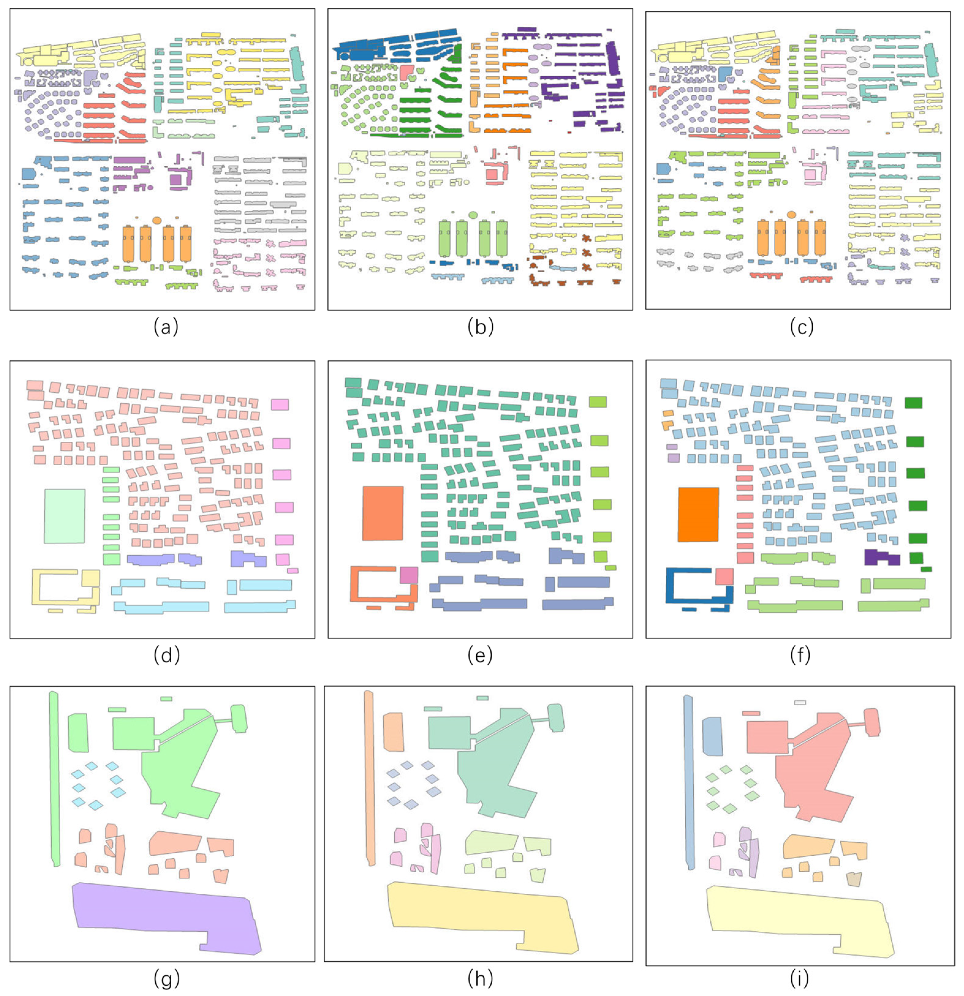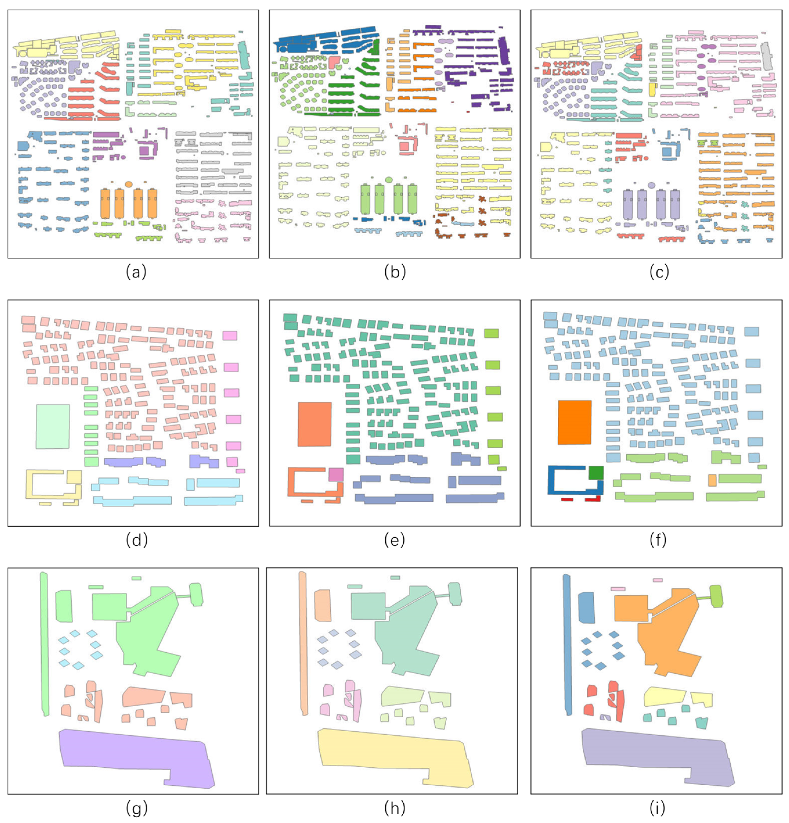 - Deng, M.; Tang, J.; Liu, Q.; Wu, F. Recognizing building groups for generalization: A comparative study. Cartogr. Geogr. Inf. Sci. 2018, 45, 187–204. [Google Scholar] [CrossRef]