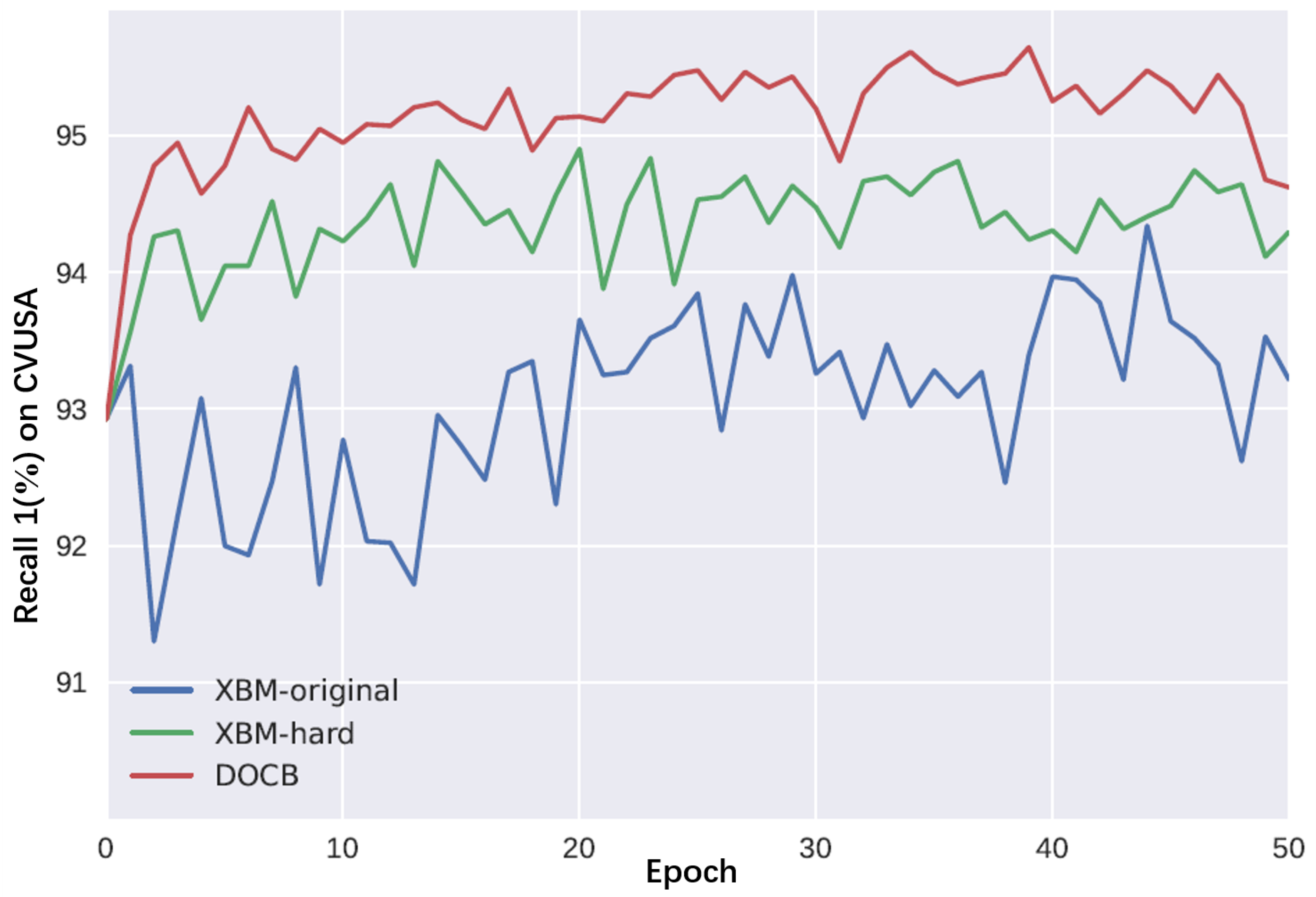 - Experiments show the following: With the DOCB and MSFA, we have a top 1 recall of 95.78% on CVUSA and 86.34% on CVACT_val. In addition, our model produces a shorter descriptor with a length of 512 and has better cross-data transferring ability.