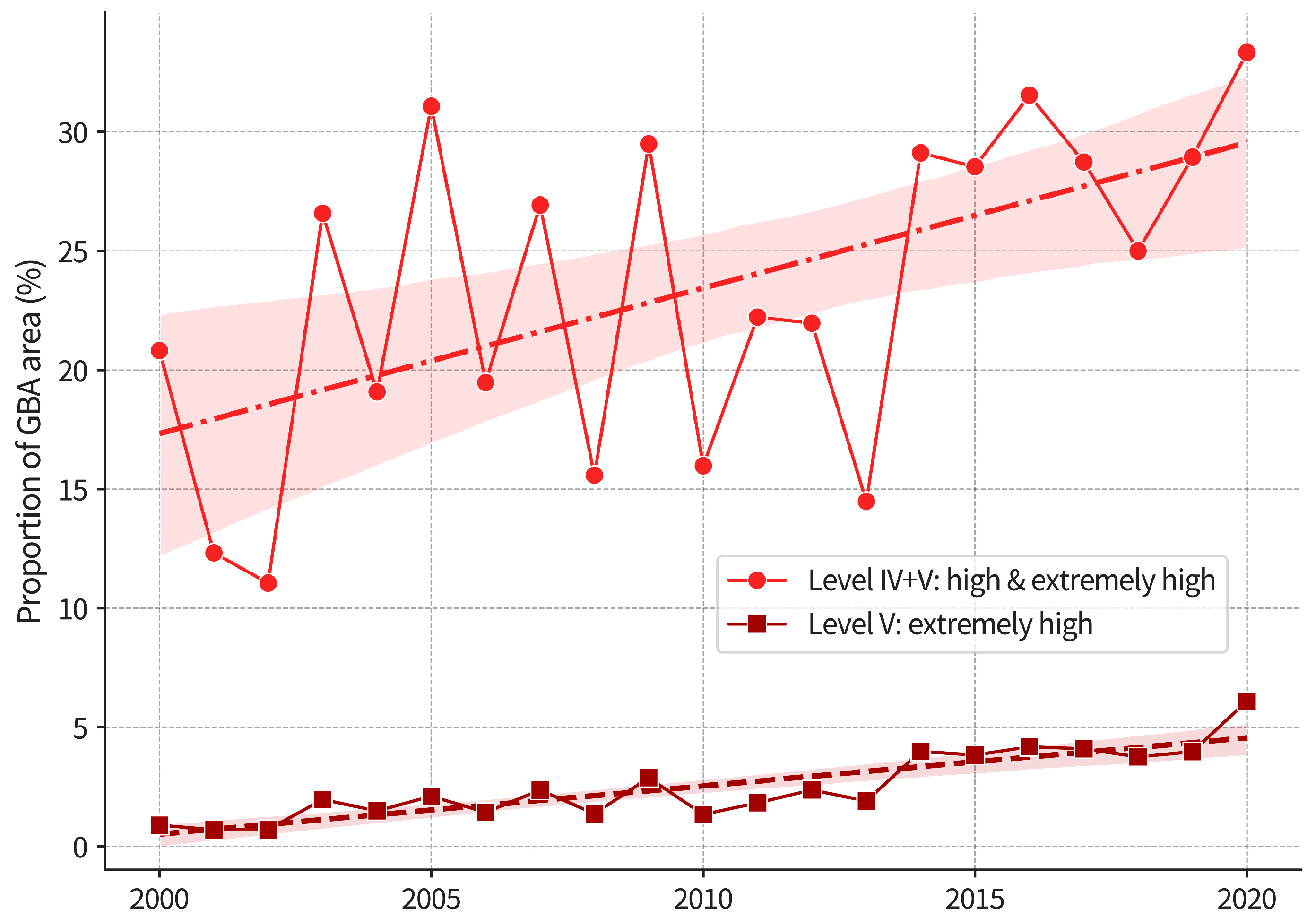 3.1. Spatiotemporal Patterns of Heat Hazard in GBA