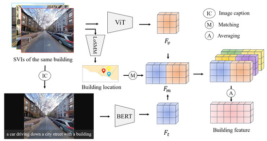 SVIs are typically ground-level images that provide visual information closer to buildings and rich embedded socioeconomic semantics [18,19], giving a unique advantage in building instance function identification. Laupheimer et al. [20] proposed a CNN-based approach that uses SVIs to classify building facades and identify five categories of building functions. Li et al. [14] proposed a geometry-aware framework for fine-grained building function identification based on SVIs, improving accuracy by incorporating geometric relationships between GIS and SVIs. However, these methods are focused on identifying building functions based on the visual features of SVIs, which ignores the multiple potential semantics of SVIs that are closely related to building functions.