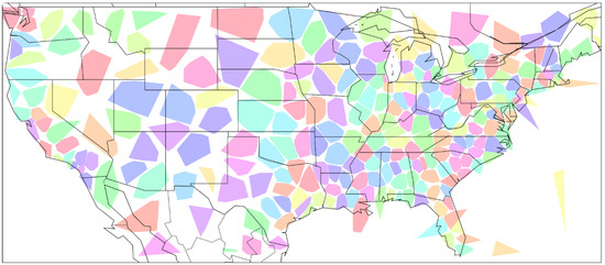 - GeoText is a small dataset that contains 377,616 messages from 9475 users in 48 states in the United States. The documents in this dataset consist of concatenated tweets from individual users (in this paper, “concatenated tweets” refers to the direct combination of original tweets, without using any AI tools or generative models; all data are authentic user posts collected via the Twitter API), with the geographical coordinates of each tweet serving as the location of the user’s ground truth. The dataset is divided into a training set, a validation set, and a testing set, containing 5685, 1895, and 1895 users, respectively.