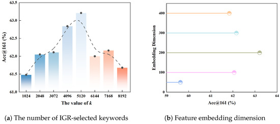 Specifically, in the training set, we treat each training user’s aggregated tweets as a single document. Before feature selection using IGR, the documents first undergo systematic preprocessing. This preprocessing procedure encompasses removing special characters and emojis, deleting URL links, eliminating stop words, and reducing the vocabulary to its base forms. On this basis, for a given term , where represents the candidate keyword vocabulary constructed from training user documents , its presence or absence is denoted as a binary feature variable . Y denotes the vector of geographic labels corresponding to training users. The IGR is defined by Equation (3):