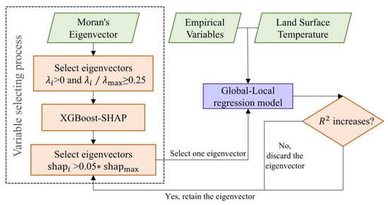 This variable selection method is employed to develop an efficient global–local regression (EGLR) model, which is used to estimate the surface temperature of Wuhan City. Figure 2 illustrates the research framework of this study.