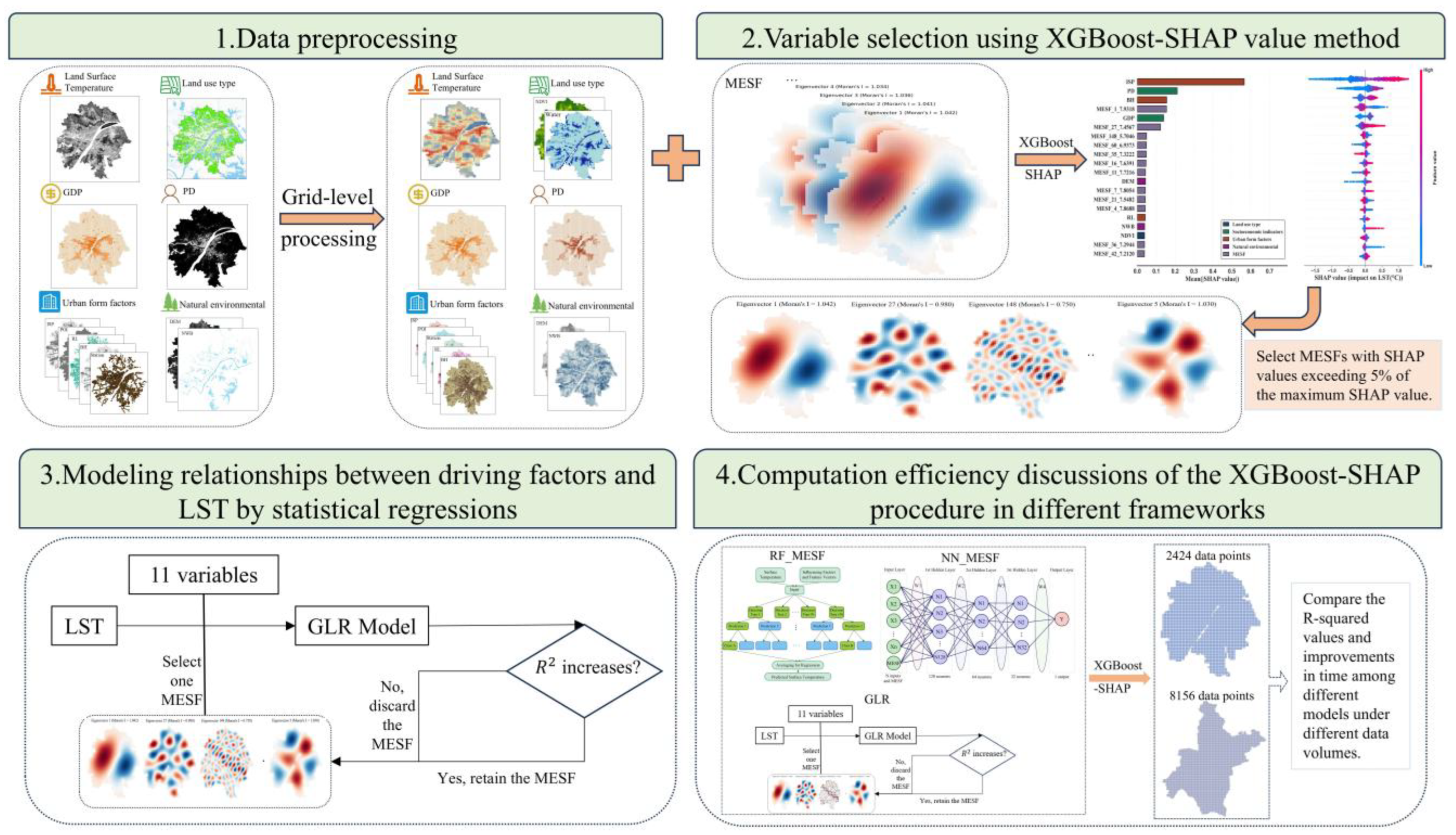 - The XGBoost-SHAP method significantly reduces the time required for selecting Moran eigenvectors compared to the traditional forward stepwise regressive selecting procedure.