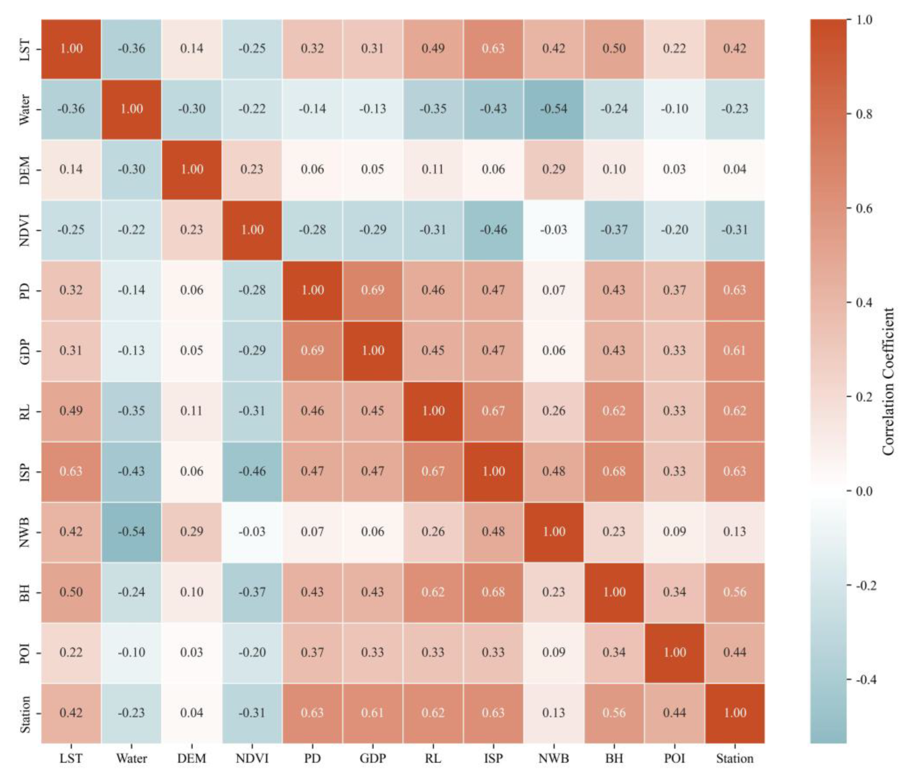 - Yang, L.; Yu, K.; Ai, J.; Liu, Y.; Yang, W.; Liu, J. Dominant Factors and Spatial Heterogeneity of Land Surface Temperatures in Urban Areas: A Case Study in Fuzhou, China. Remote Sens. 2022, 14, 1266. [Google Scholar] [CrossRef]
