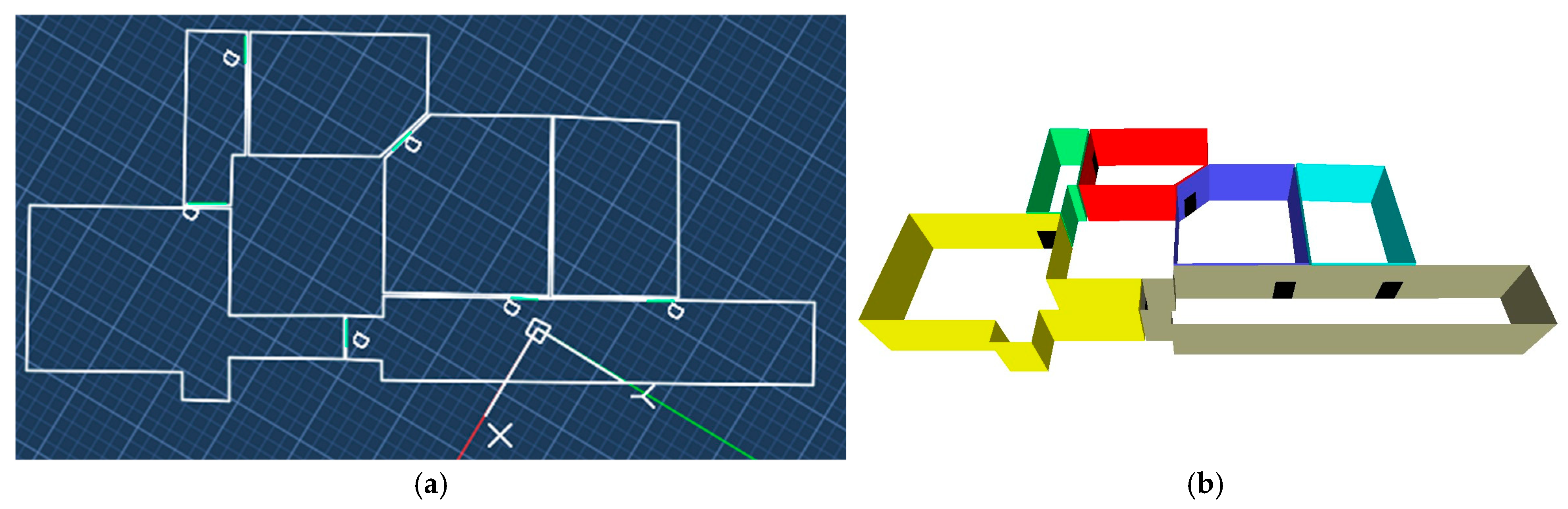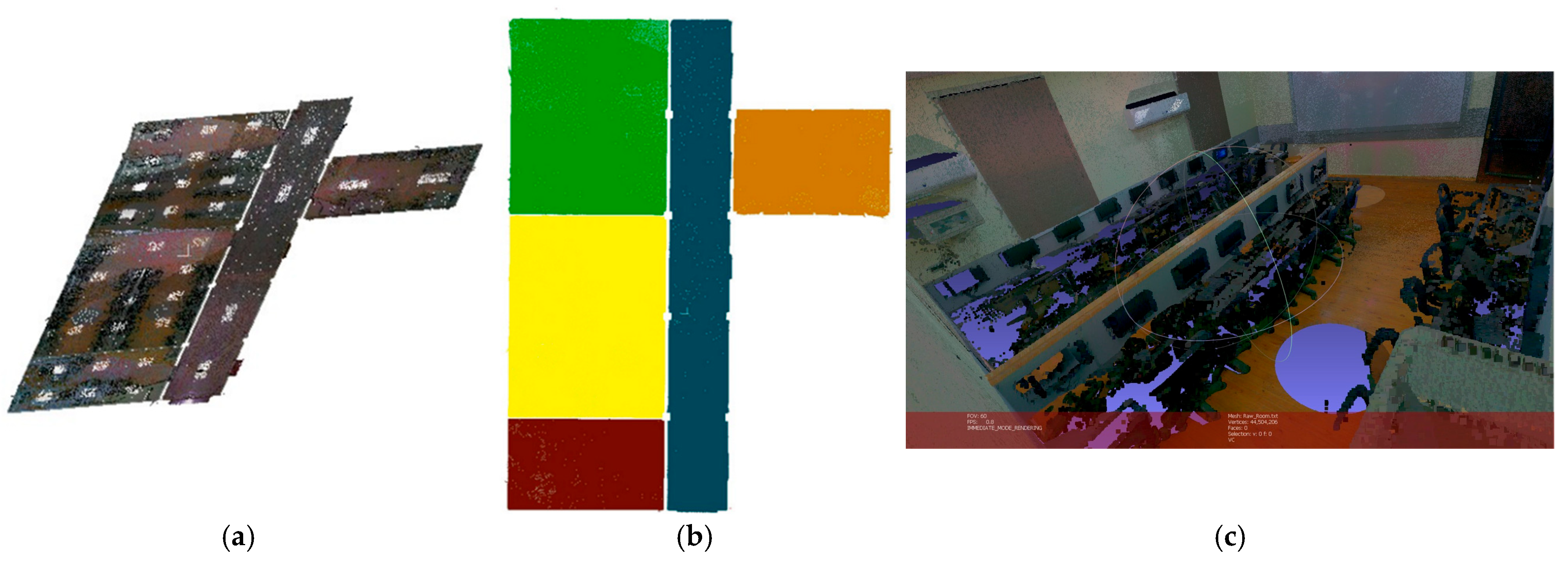 - Sanchez, V.; Zakhor, A. Planar 3D modeling of building interiors from point cloud data. In Proceedings of the 2012 19th IEEE International Conference on Image Processing, Orlando, FL, USA, 30 September–3 October 2012; pp. 1777–1780. [Google Scholar] [CrossRef]