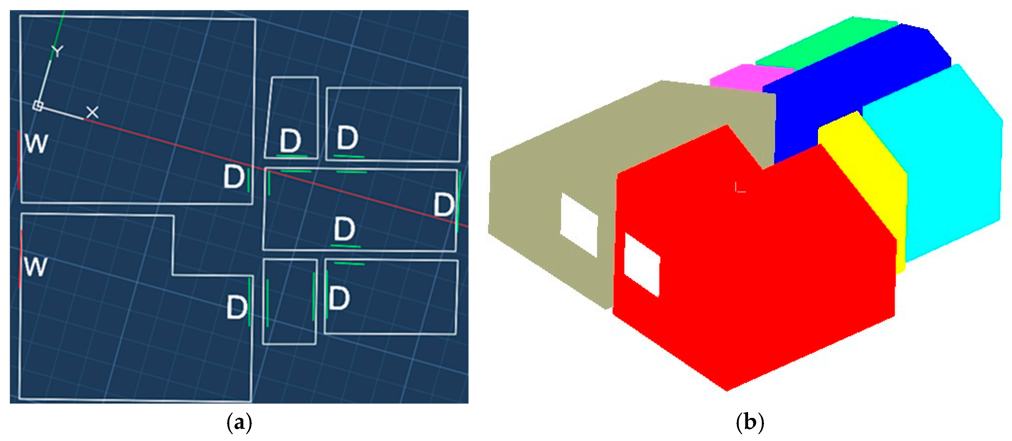 - Murali, S.; Speciale, P.; Oswald, M.R.; Pollefeys, M. Indoor Scan2BIM: Building information models of house interiors. In Proceedings of the 2017 IEEE/RSJ International Conference on Intelligent Robots and Systems (IROS), Vancouver, BC, Canada, 24–28 September 2017; pp. 6126–6133. [Google Scholar] [CrossRef]