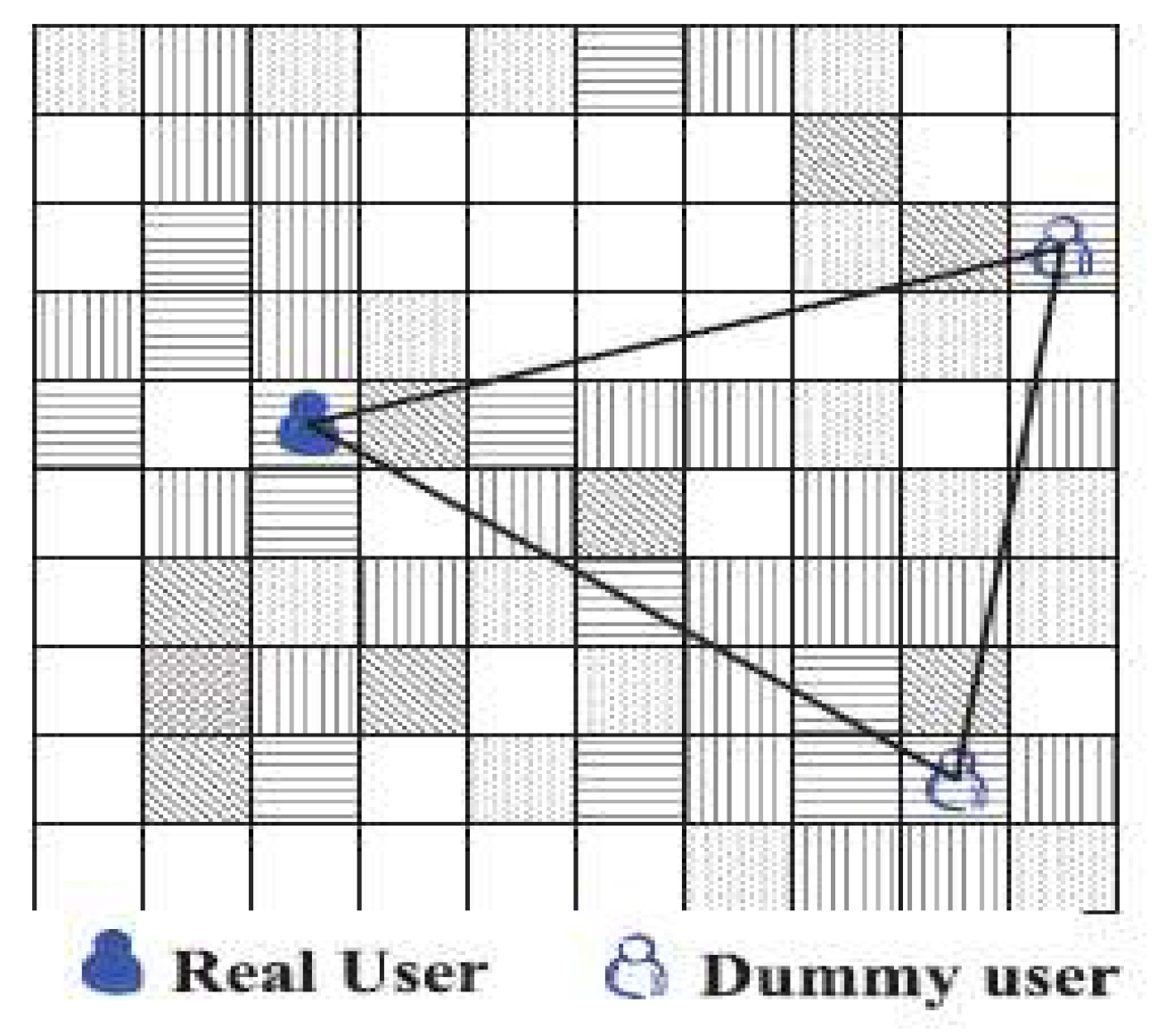 - Zhang, S.; Li, M.; Liang, W.; Sandor, V.K.A.; Li, X. A survey of dummy-based location privacy protection techniques for location-based services. Sensors 2022, 22, 6141. [Google Scholar] [CrossRef]