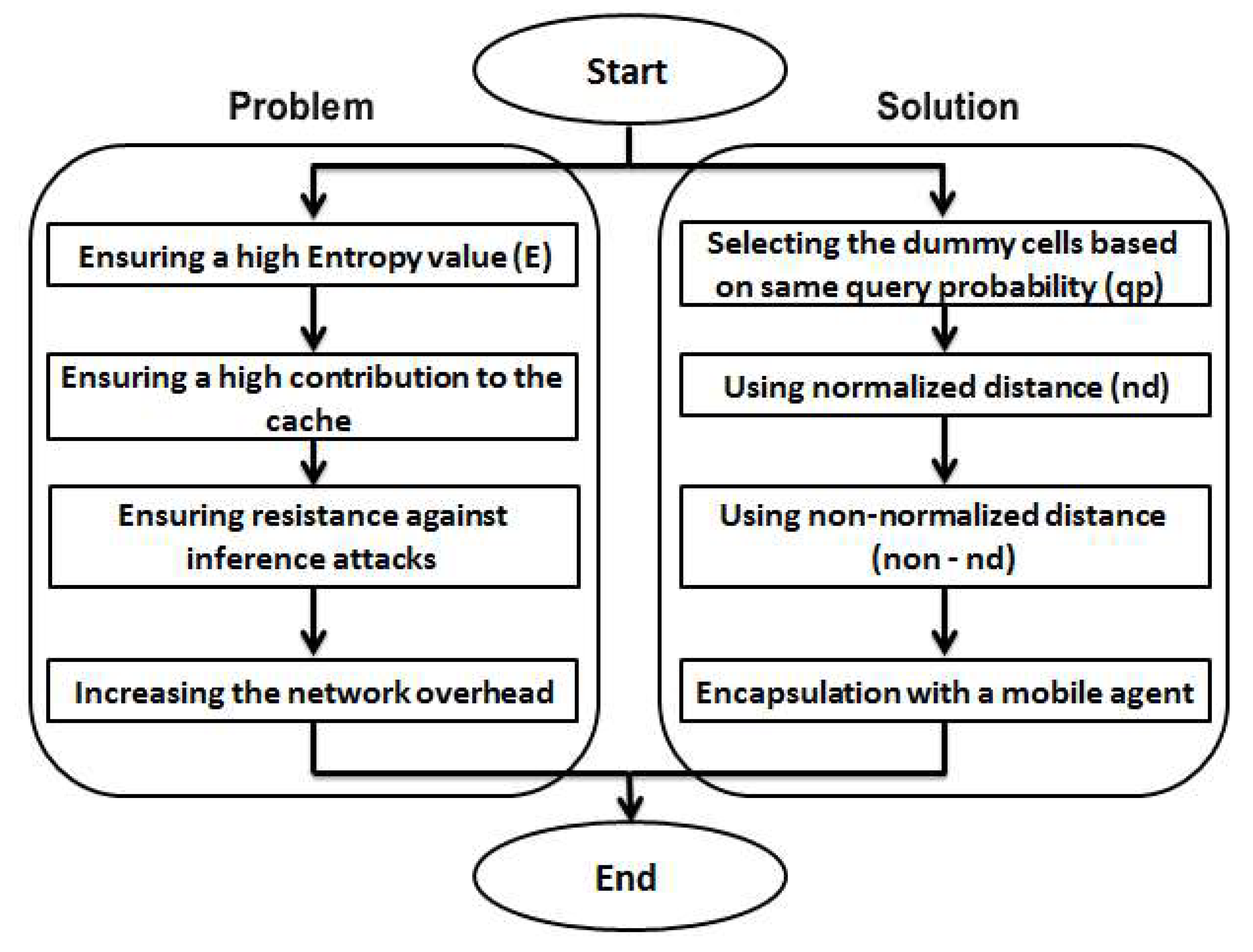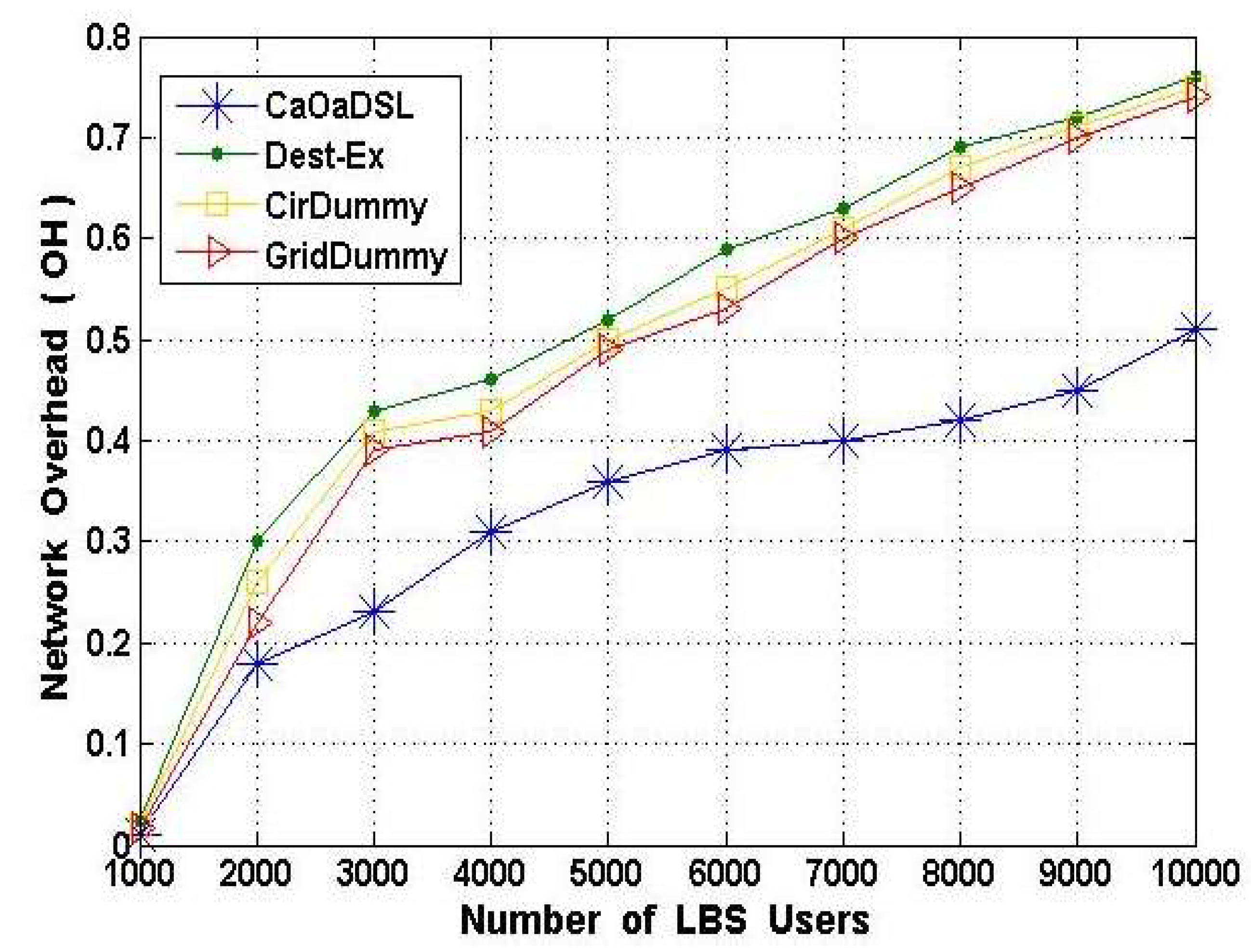 - Considering resistance against inference attacks, we enhance the CaDDSL algorithm to obtain the Caching-Aware Overhead-Aware Dummy Selection (CaOaDSL) algorithm. Our CaOaDSL algorithm ensures resistance against homogeneity location attack and semantic location attack based on generating/selecting the dummies using non-normalized distance. In addition, it guarantees a high privacy protection level with minimal network overhead.