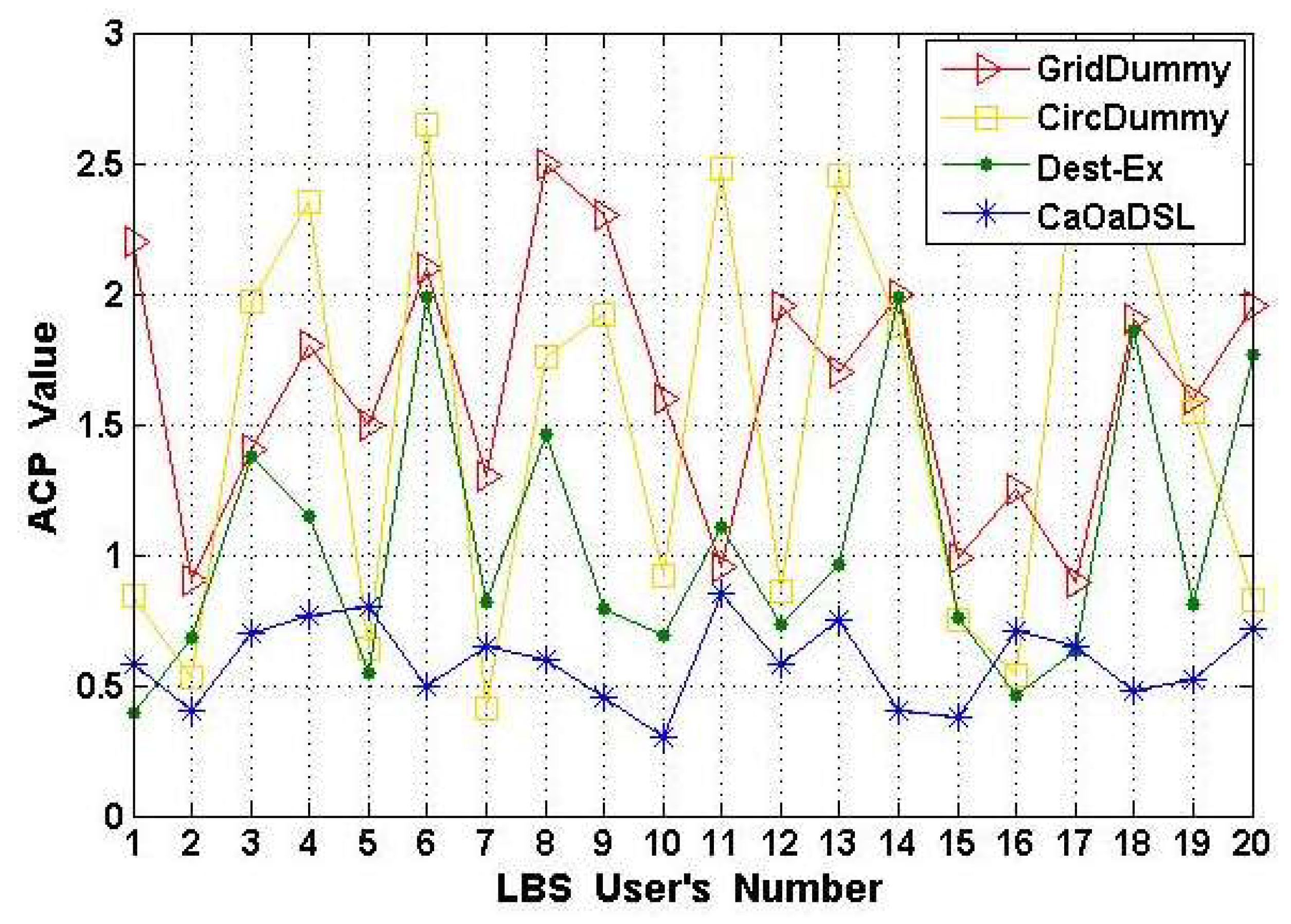 - We propose the Caching-Aware Double-Dummy Selection (CaDDSL) algorithm to generate/select strong location dummies for location privacy protection purposes. Our proposed CaDDSL algorithm employs normalized distance to achieve two objectives: generating/selecting the dummies that have the highest contributions to the cache for answering the future queries, and decreasing the number of connections with the LBS server (a malicious party).