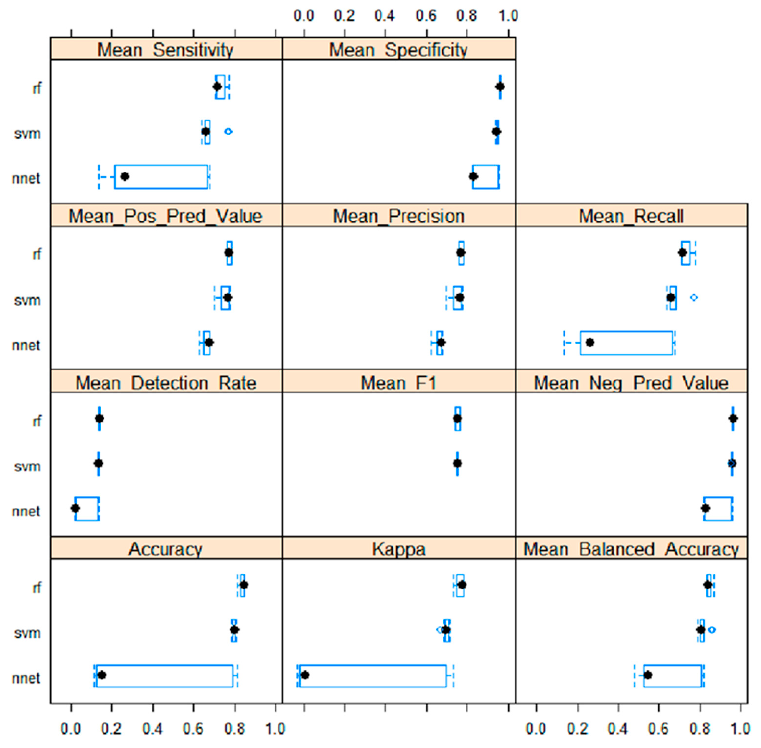 - Breiman, L. Random forests. Mach. Learn. 2001, 45, 5–32. [Google Scholar] [CrossRef]